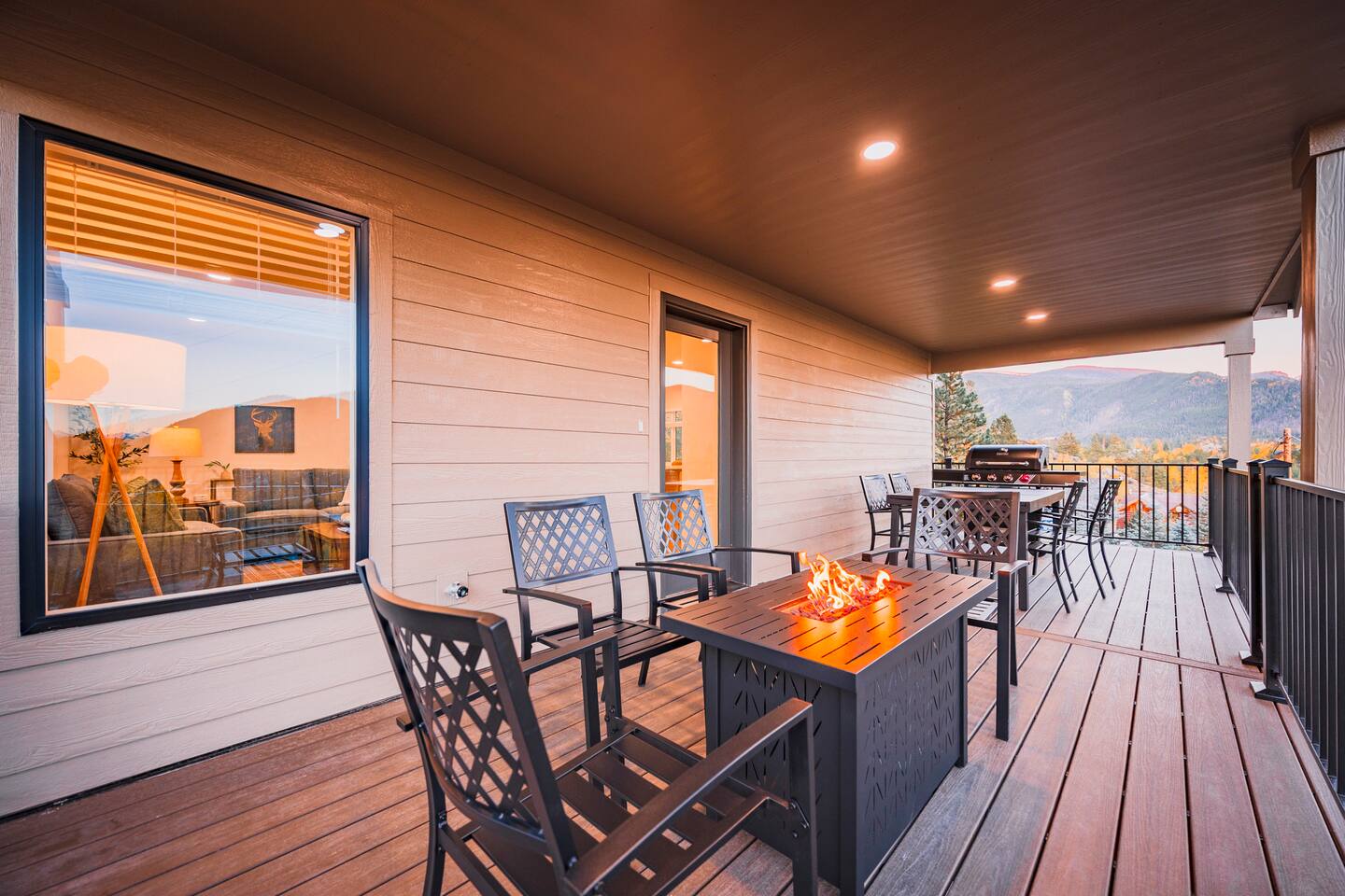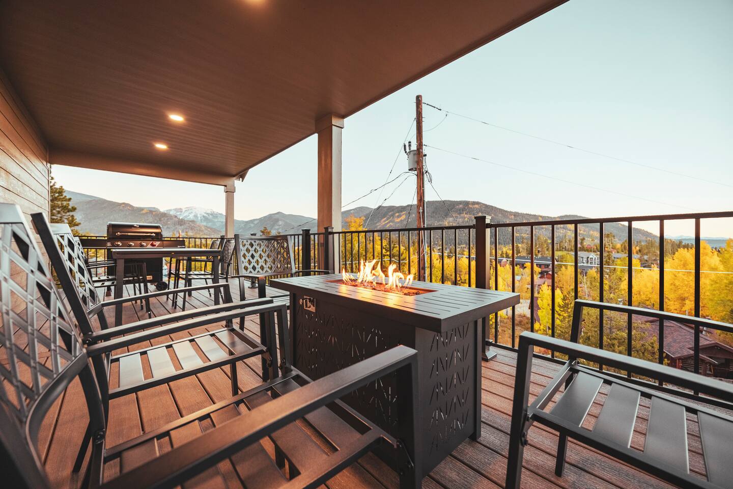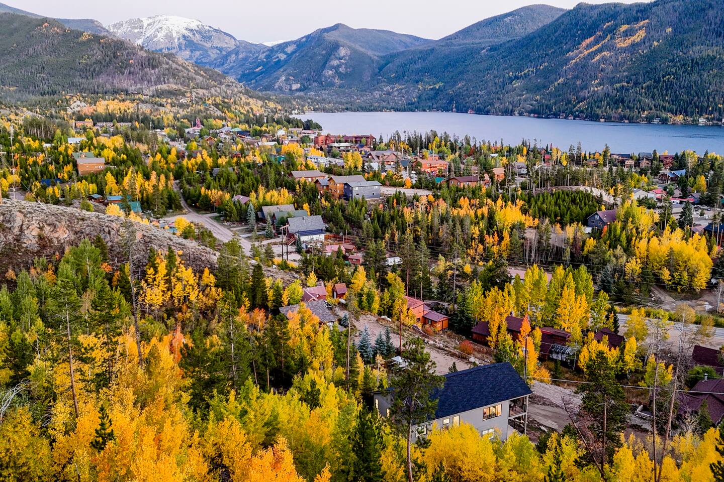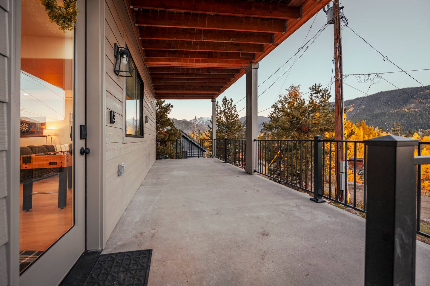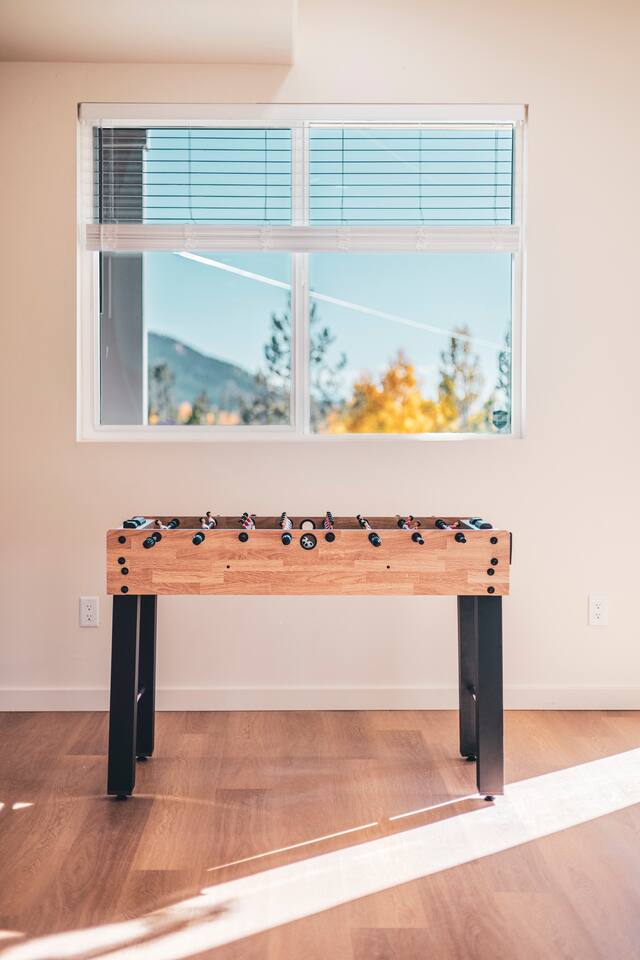 Designed for comfort and connection, this modern mountain retreat features clean lines, natural textures, and thoughtful details throughout. With four spacious bedrooms and three full bathrooms, everyone in your group will have room to unwind and enjoy the views from every window. Living Areas: Cozy up around the fireplace for movie night in the upstairs living room or head downstairs to the family room for foosball, darts or to catch your favorite game on the 75 inch TV. Kitchen & Dining: The fully equipped kitchen includes modern appliances and cookware. A large dining table offers plenty of space to share meals and memories. Outdoor Living: Step out onto the expansive deck to enjoy morning coffee, stargazing, or mountain sunsets around the fire pit. The space is perfect for outdoor dining and taking in Grand Lake’s iconic fireworks displays on holidays throughout the year. Kid-Friendly Comforts: Families will appreciate the bunk beds, books, toys, and kitchen essentials for little ones. A Pack ’n Play and travel bassinet are available upon request. Amenities for a Seamless Stay: ✔️ Smart TVs & fast Wi-Fi ✔️ New All-in-one washer/dryer ✔️ Blackout shades in every bedroom ✔️ Gas grill & outdoor fire pit ✔️ Indoor Electric fireplace ✔️ Foosball & darts ✔️ 75 inch Smart TV in family room Location: Two miles from Rocky Mountain National Park’s western entrance and a short drive to Granby Ranch (20 min) or Winter Park Resort (40 min), this home makes it easy to enjoy year-round adventure without the hustle and bustle of I-70 crowds. Distance from Denver International Airport (DIA): 120 miles / approx. 2 hr. 20 minute drive Whether you’re cozying up after a day of adventure or sipping wine on the deck overlooking the lake, this retreat offers the perfect balance of modern comfort and mountain serenity. Come make lasting memories at The Aspen Echo where mountain charm meets modern comfort.